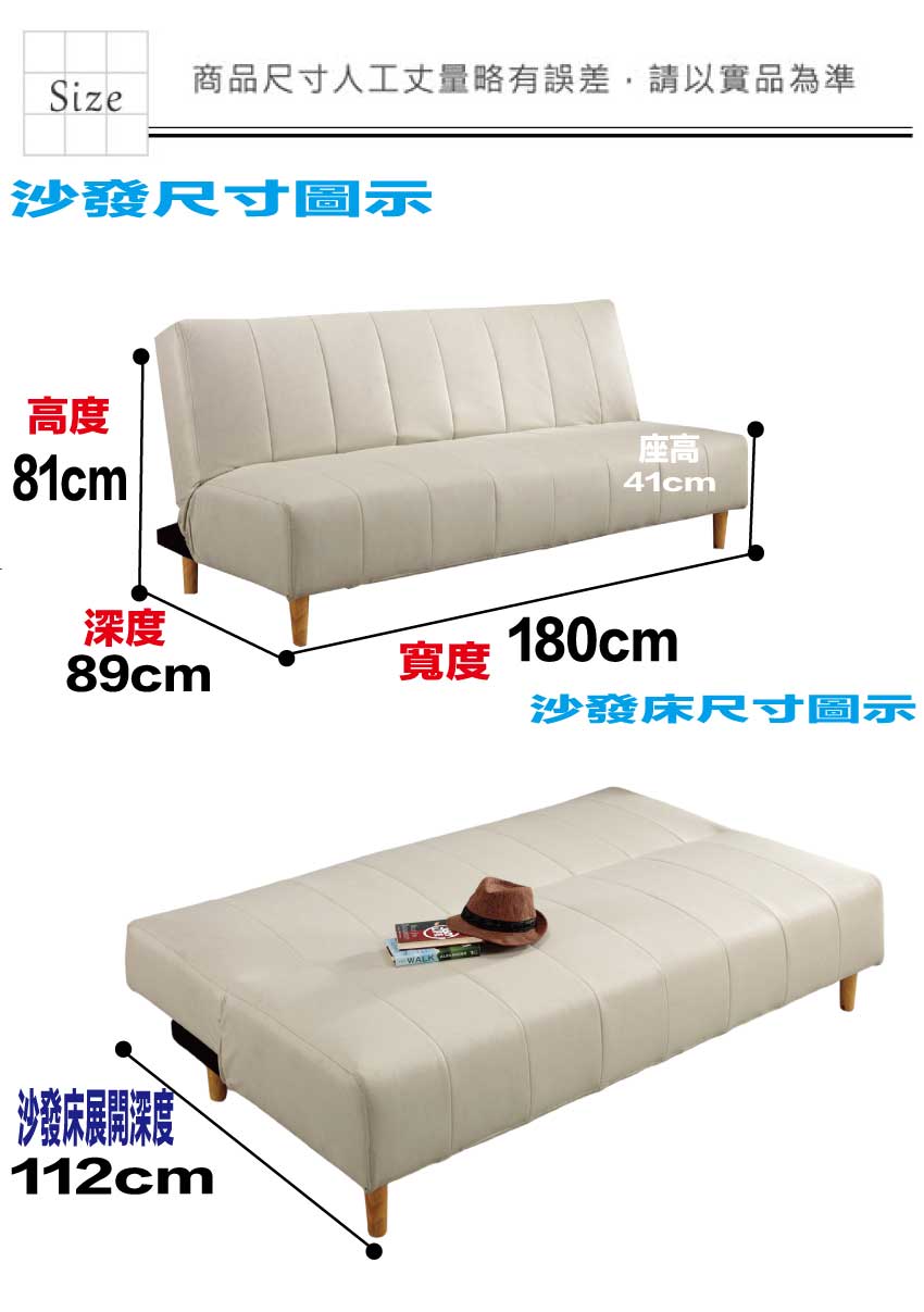 沙發床尺寸:(坐墊寬)180x(深)112x(座高)41公分