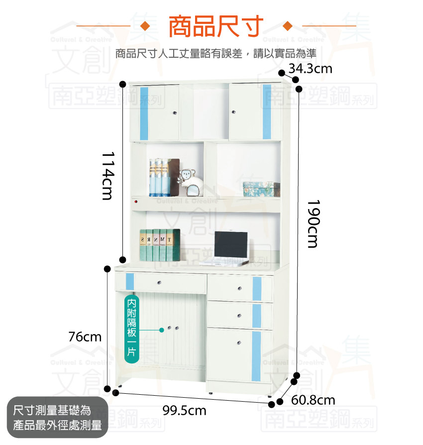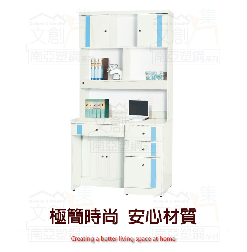 【文創集】普曼 環保3.3尺南亞塑鋼多功能四抽書桌組合(上+下座組合) 產品採用第一品牌-台製南亞塑鋼舒美板+五金滑軌結構等材質,整體材質採用防水+防燃+無甲醛安心塑鋼材質製造 ,搭配開門櫃+推門櫃+四抽屜+開放收納層格等便利收納空間設計,防止受潮,增加支撐力,堅固不會塌陷,全由專人配送到家,專業安心服務,替你省下更多時間!