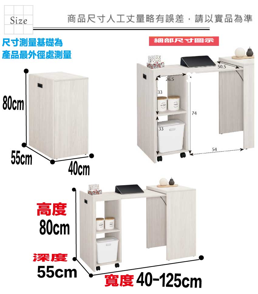 尺寸:(寬)40-125x(深)55x(高)80/公分