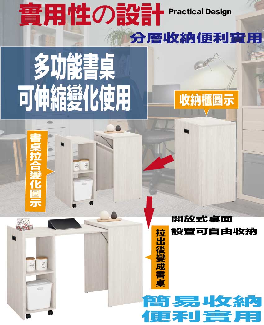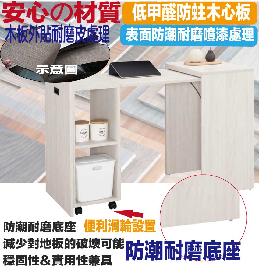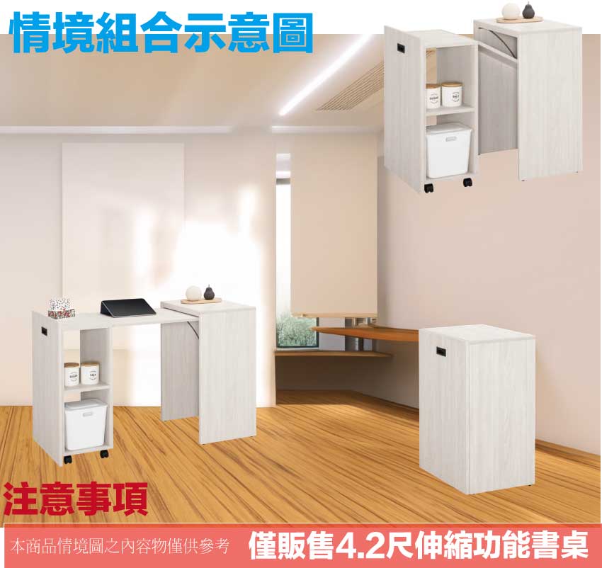 【文創集】丹尼4.2尺伸縮機能性書桌(書桌可伸縮變化收納櫃) 木紋雙色系+安心材質製造,使用放心+搭配居家更便利,採用防蛀木心板+防潮耐磨底座等安心材質製造 ,外層採用防潮耐磨噴漆處理搭配採用伸縮變化機能+開放層格等收納空間設計,全由專人配送到家,專業安心服務,替你省下更多時間!