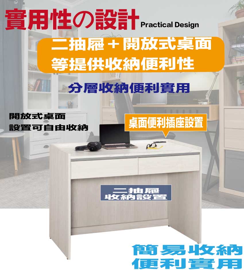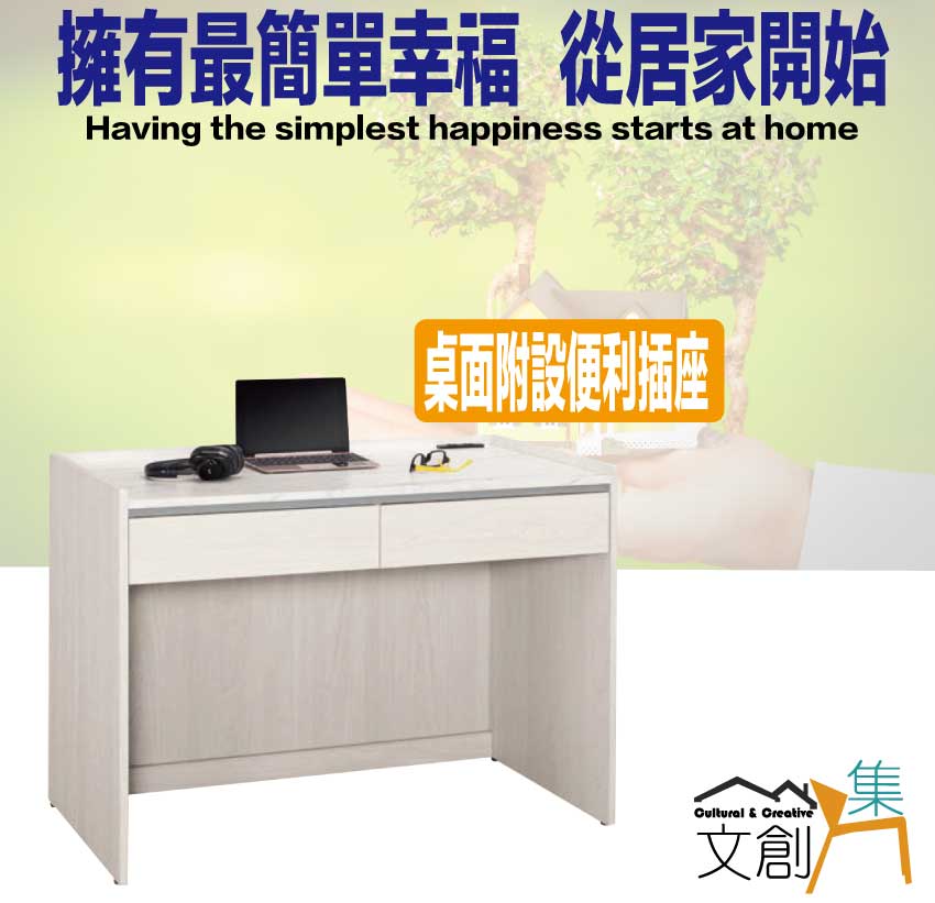【文創集】華爾雙色3.5尺二抽書桌 木紋雙色系+安心材質製造,使用放心+搭配居家更便利,採用防蛀木心板+防潮耐磨底座+五金滑軌結構等安心材質製造 ,外層採用防潮耐磨噴漆處理搭配採用二抽屜+開放式桌面等收納設計,全由專人配送到家,專業安心服務,替你省下更多時間!