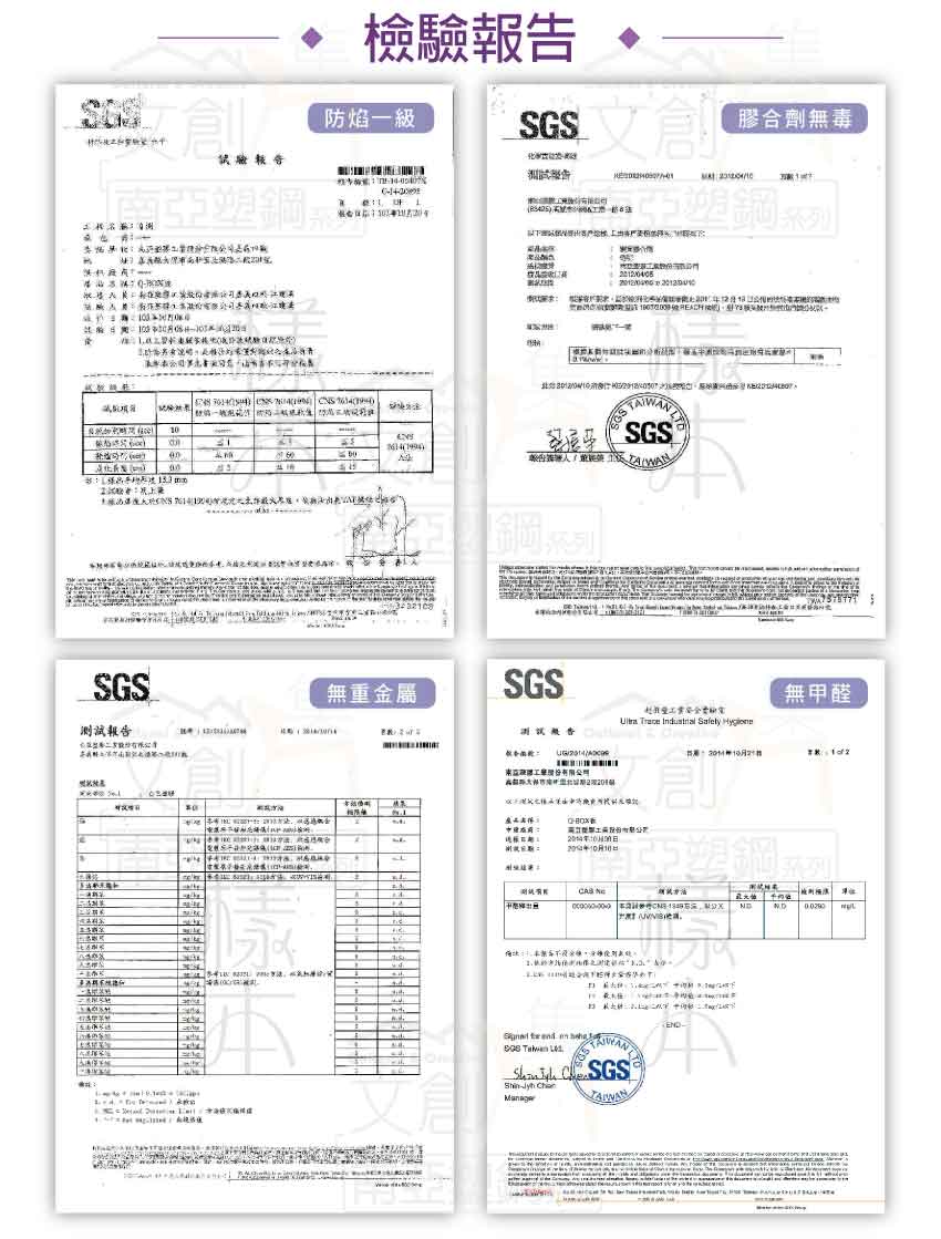 防水+防燃+無甲醛安心塑鋼材質,結構牢固耐用,也不用擔心蟲蛀的煩惱,使用放心