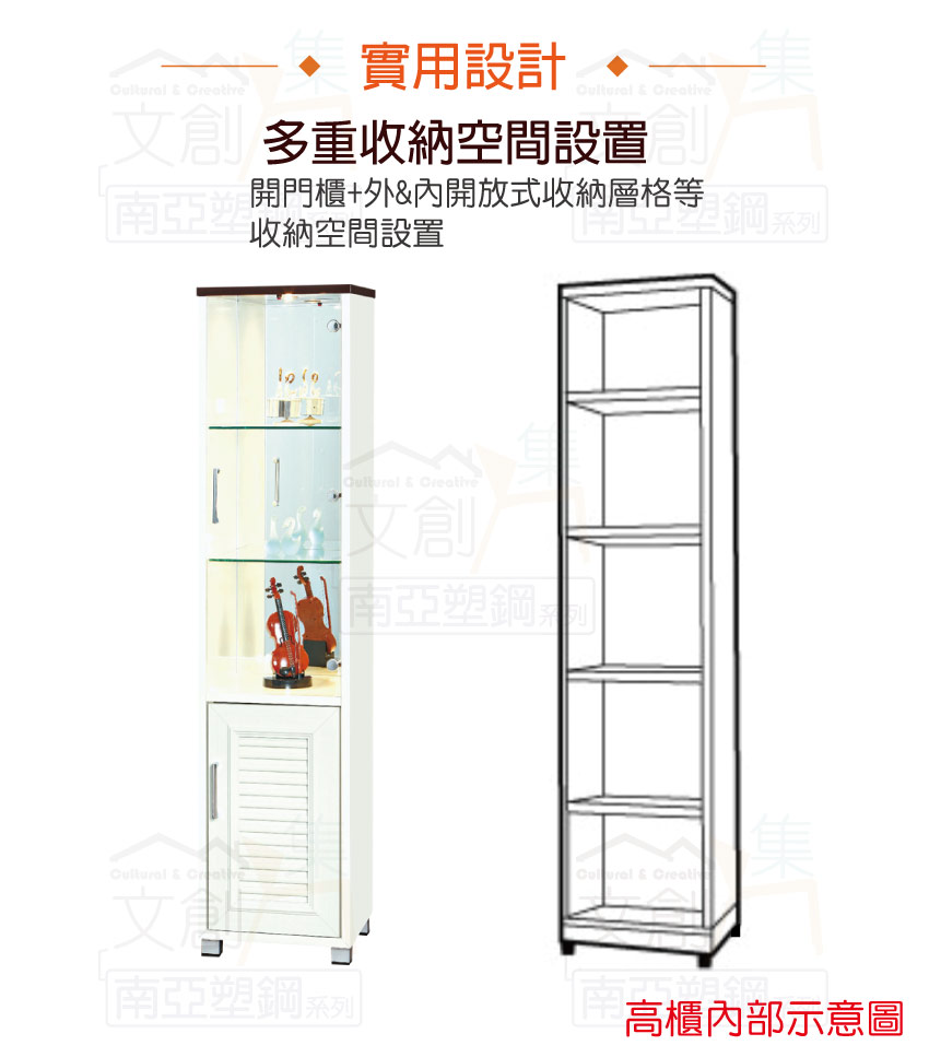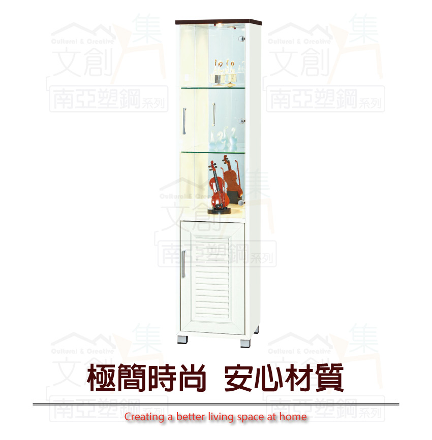 【文創集】朱莉 環保1.4尺南亞塑鋼玻璃雙門高展示櫃/收納櫃 產品採用第一品牌-台製南亞塑鋼舒美板+玻璃門片+5mm玻璃隔板材質,整體材質採用防水+防燃+無甲醛安心塑鋼材質製造 ,搭配開門櫃+內開放式層格收納+LED氛圍燈設置等便利設計,防止受潮,增加支撐力,堅固不會塌陷,全由專人配送到家,專業安心服務,替你省下更多時間!