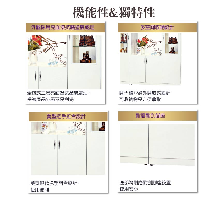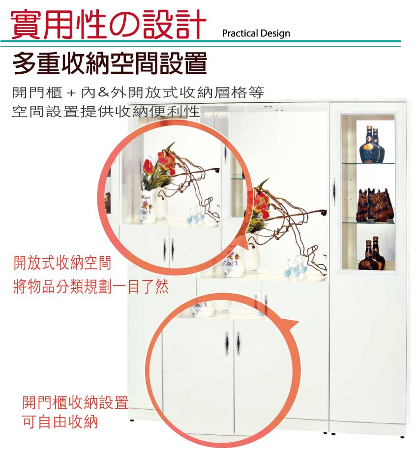 雙面美型設計搭配單面使用開門櫃+內&外開放式層格收納等便利設計