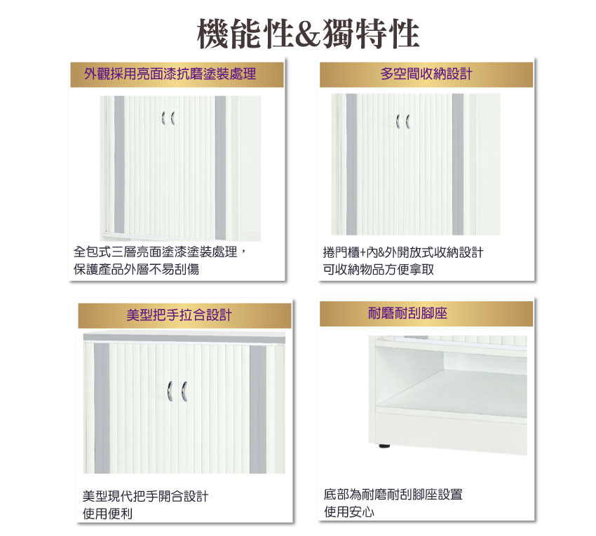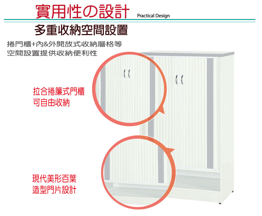 捲簾推門櫃+內&外開放式層格等便利收納空間設計