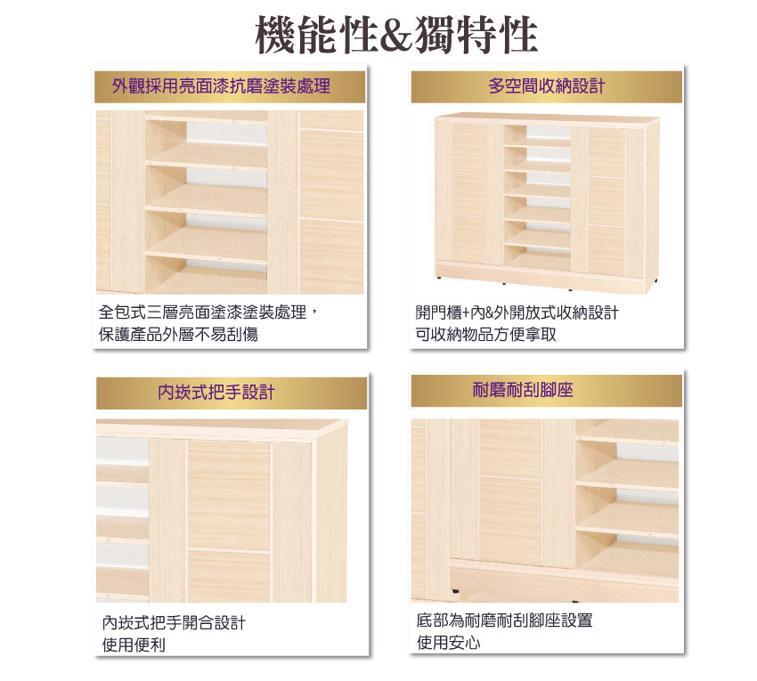 【文創集】摩斯 環保4.6尺南亞塑鋼推門鞋櫃 產品採用第一品牌-台製南亞塑鋼舒美板材質,整體材質採用防水+防燃+無甲醛安心塑鋼材質製造 ,搭配推門+內&外開放式層格等便利收納空間設計,防止受潮,增加支撐力,堅固不會塌陷,全由專人配送到家,專業安心服務,替你省下更多時間!