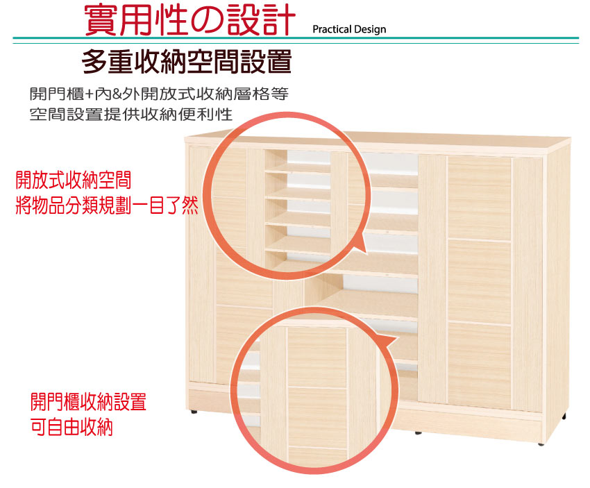 推門櫃+內&外開放式層格等便利收納空間設計