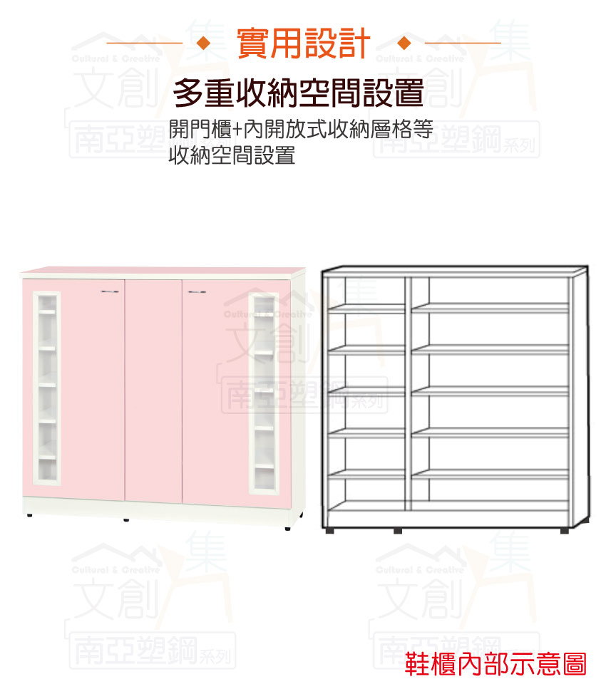 【文創集】巴特 環保3.9尺南亞塑鋼三開門鞋櫃 產品採用第一品牌-台製南亞塑鋼舒美板材質,整體材質採用防水+防燃+無甲醛安心塑鋼材質製造 ,搭配開門櫃+內開放式層格等便利收納空間設計,防止受潮,增加支撐力,堅固不會塌陷,全由專人配送到家,專業安心服務,替你省下更多時間!