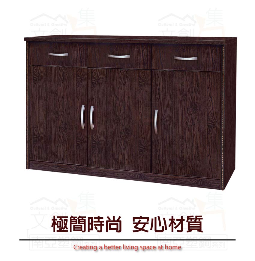 【文創集】西莉 環保4.2尺南亞塑鋼三門三抽餐櫃/收納櫃 產品採用第一品牌-台製南亞塑鋼舒美板+五金滑軌結構材質,整體材質採用防水+防燃+無甲醛安心塑鋼材質製造 ,搭配開門櫃+三抽屜+內開放式層格等便利收納空間設計,防止受潮,增加支撐力,堅固不會塌陷,全由專人配送到家,專業安心服務,替你省下更多時間!