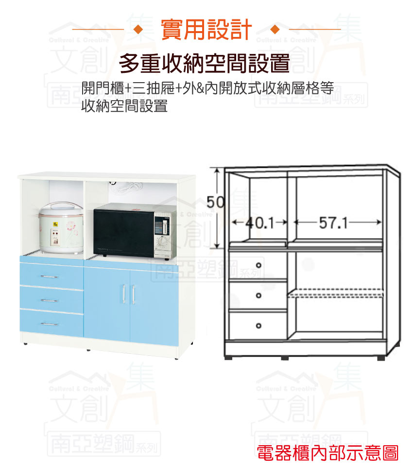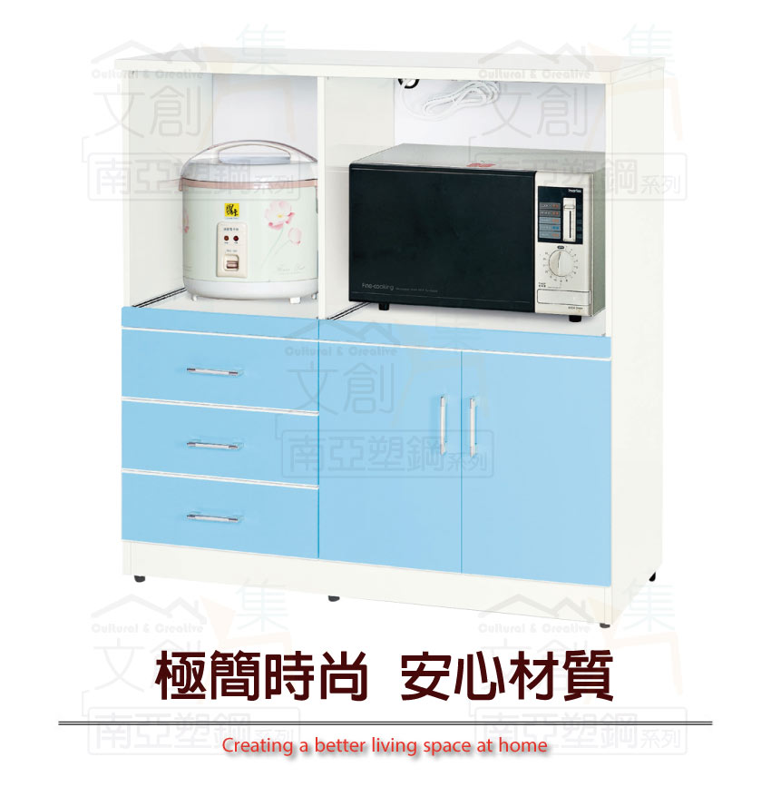 【文創集】安莉 環保3.6尺南亞塑鋼二門三抽層架中餐櫃/收納櫃 產品採用第一品牌-台製南亞塑鋼舒美板+五金滑軌結構材質,整體材質採用防水+防燃+無甲醛安心塑鋼材質製造 ,搭配開門櫃+三抽屜+內&外開放式層格+拉合式層架等便利收納空間設計,防止受潮,增加支撐力,堅固不會塌陷,全由專人配送到家,專業安心服務,替你省下更多時間!