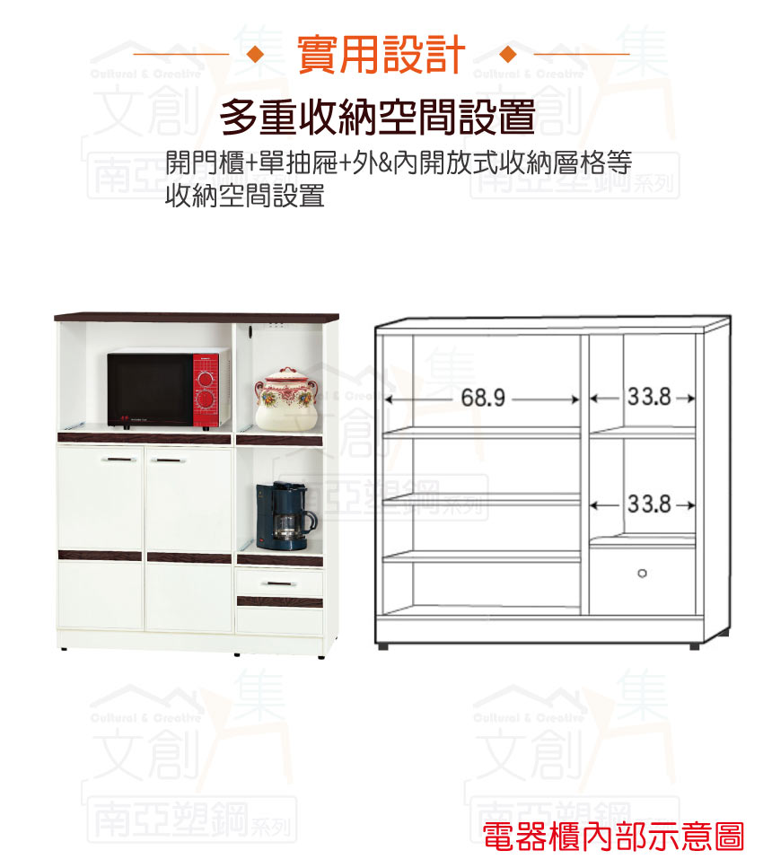 【文創集】寶莉 環保3.6尺南亞塑鋼單抽二門中餐櫃/收納櫃 產品採用第一品牌-台製南亞塑鋼舒美板+五金滑軌結構材質,整體材質採用防水+防燃+無甲醛安心塑鋼材質製造 ,搭配開門櫃+單抽屜+內&外開放式層格+拉合式層架等便利收納空間設計,防止受潮,增加支撐力,堅固不會塌陷,全由專人配送到家,專業安心服務,替你省下更多時間!