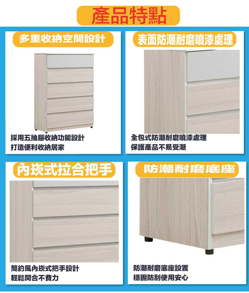 【文創集】艾蘿2.7尺五抽斗櫃 淺橡木紋色系+安心材質製造,使用放心+搭配居家更便利,採用防蛀木心板+防潮耐磨底座+五金滑軌結構等安心材質製造 ,外層採用防潮耐磨噴漆處理搭配採用五抽屜+開放式桌面等收納空間設計,全由專人配送到家,專業安心服務,替你省下更多時間!