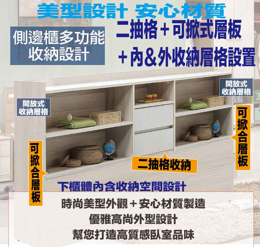 採用防蛀木心板+防潮耐磨底座等安心材質製造