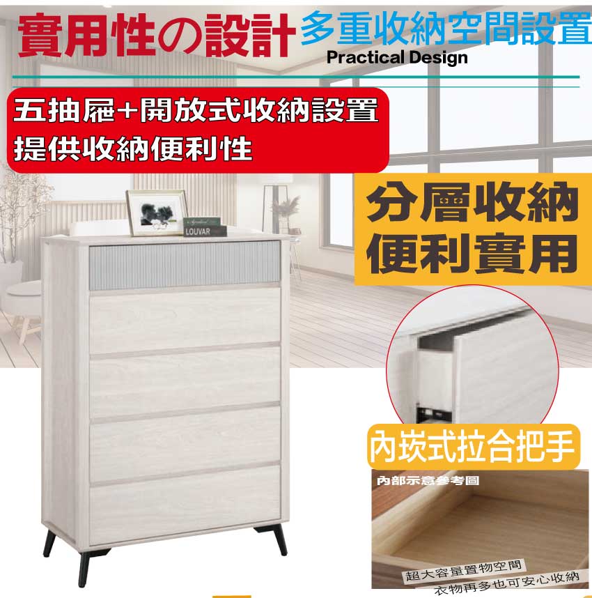 【文創集】克萊2.7尺雙色五抽斗櫃 木紋雙色系+安心材質製造,使用放心+搭配居家更便利,採用防蛀木心板+五金滑軌結構+烤漆金屬腳座等安心材質製造 ,外層採用防潮耐磨噴漆處理搭配採用五抽屜+開放桌面等收納空間設計,全由專人配送到家,專業安心服務,替你省下更多時間!