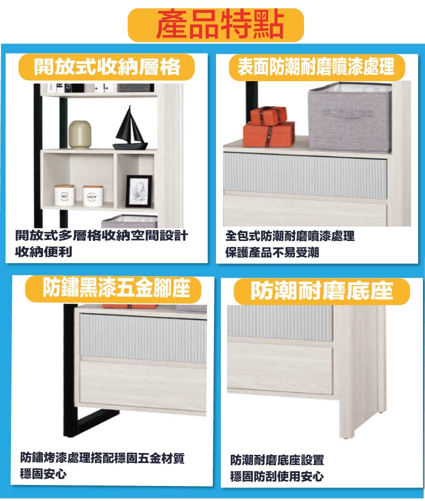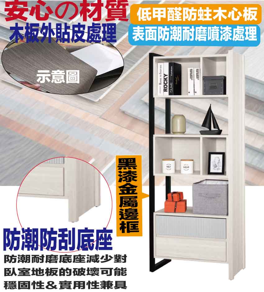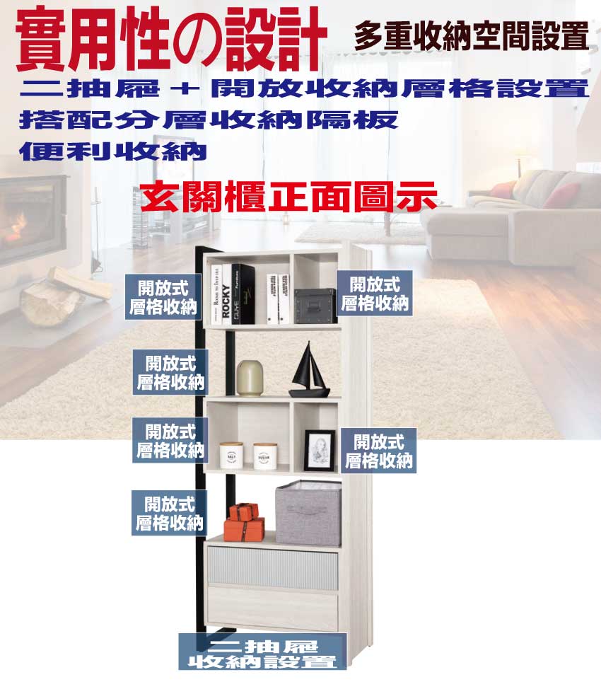 【文創集】克萊雙色2.3尺二抽開放玄關櫃/書櫃 木紋雙色系+安心材質製造,使用放心+搭配居家更便利,採用防蛀木心板+烤漆五金腳座+五金滑軌結構等安心材質製造 ,外層採用防潮耐磨噴漆處理搭配採用二抽屜+開放層格等收納空間設計,全由專人配送到家,專業安心服務,替你省下更多時間!