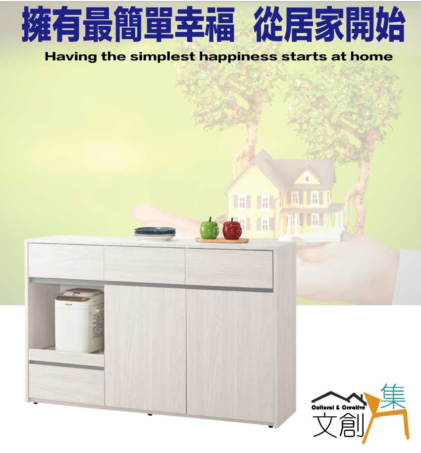 【文創集】華爾雙色4.5尺二門拉盤低餐櫃 木紋雙色系+安心材質製造,使用放心+搭配居家更便利,採用防蛀木心板+防潮耐磨底座+防夾手緩衝門片五金+仿石紋耐磨美耐皿桌面板+五金滑軌結構等安心材質製造 ,外層採用防潮耐磨噴漆處理搭配採用開門櫃+拉盤層架+三抽屜+內&外開放層格等收納空間設計,全由專人配送到家,專業安心服務,替你省下更多時間!