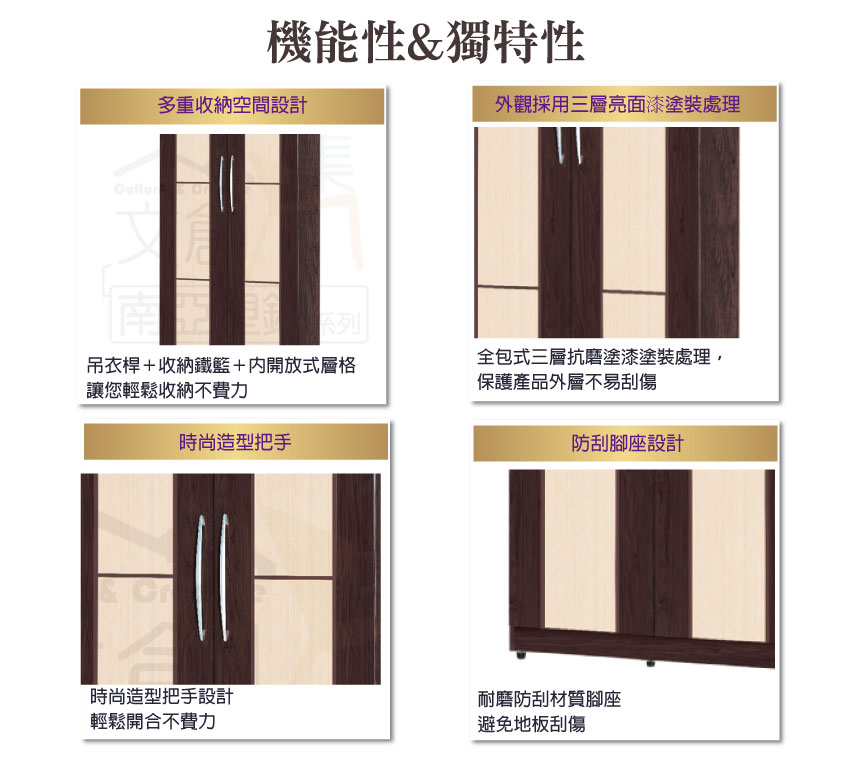 產品採用第一品牌-台製南亞塑鋼舒美板+五金滑軌結構等材質,整體材質採用防水+防燃+無甲醛安心塑鋼材質製造 ,搭配開門櫃+吊衣桿+收納鐵籃+內開放式收納等便利設計,防止受潮,增加支撐力,堅固不會塌陷,全由專人配送到家,專業安心服務,替你省下更多時間!