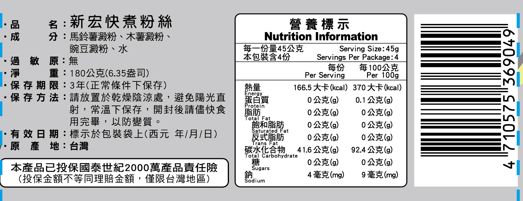 火鍋季 吃鍋找口感絕配 [新宏]快煮粉絲/寬粉180g(純素) 口味任選 [3包免運組]