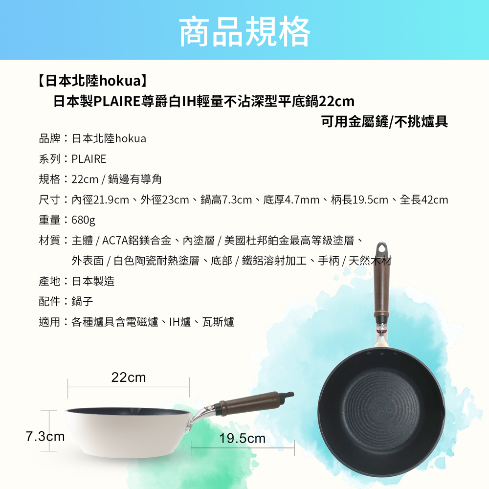 【hokua】Japanese-made PLAIRE IH white Non-stick Deep Frying pan 22cm