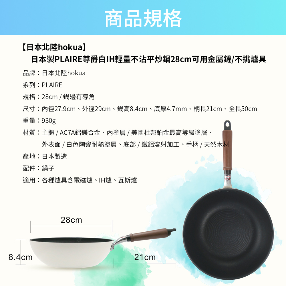 【hokua】Japanese-made PLAIRE IH white Non-stick Wok 28cm