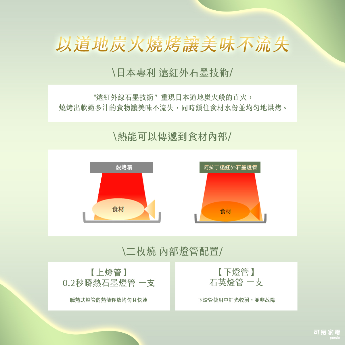 🔥人氣熱銷突破300萬台🔥1. 日本獨家專利0.2秒瞬熱2. 主婦好幫手!蒸、烤、煮、加熱一台搞定(附贈專用烤盤)3. 採世界首創遠紅外石墨燈管,可達280度超高溫4. 銷量突破300萬台,日台韓主婦小資族愛用烤箱5. 台灣總代理,5大保證保固維修好安心