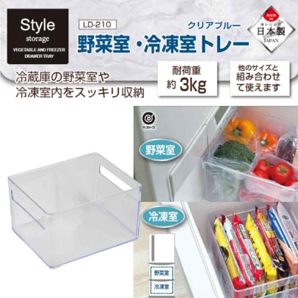 【bestco】Japan-Made Transparent Deep Refrigerator Storage Box, Large (For Refrigerator & Freezer / Open-Handle Design)