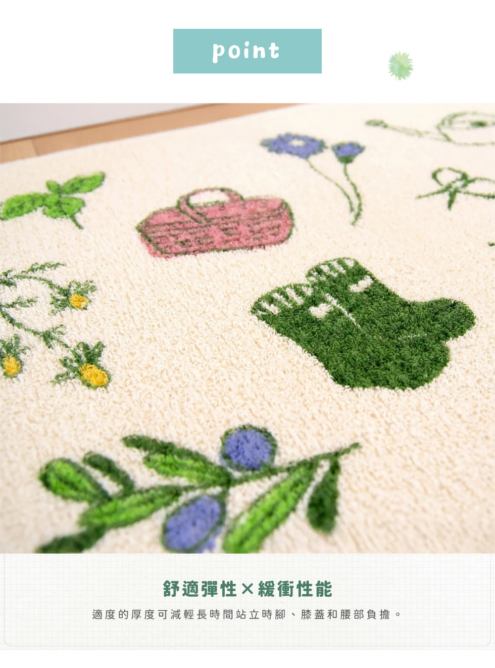 ●適度的厚度可減輕長時間站立時對腳、膝蓋和腰部的負擔,讓料理時光更輕鬆愉快。