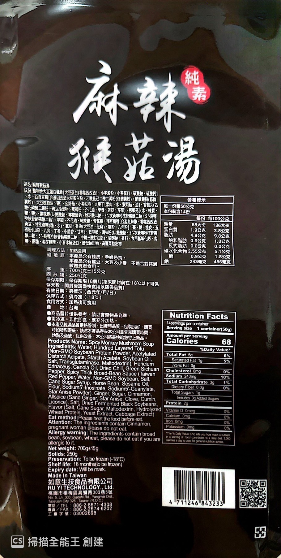 A.旺意香-麻辣猴菇湯(純素)700G/250g