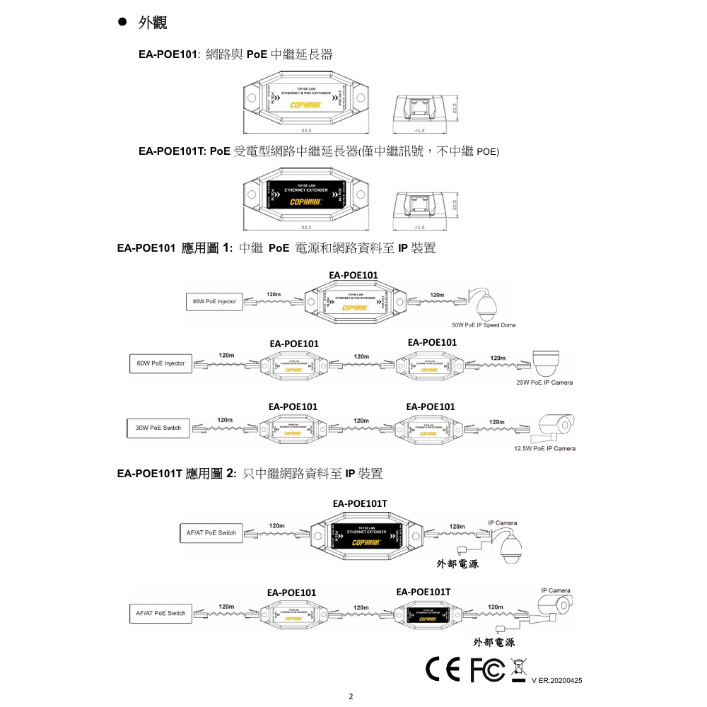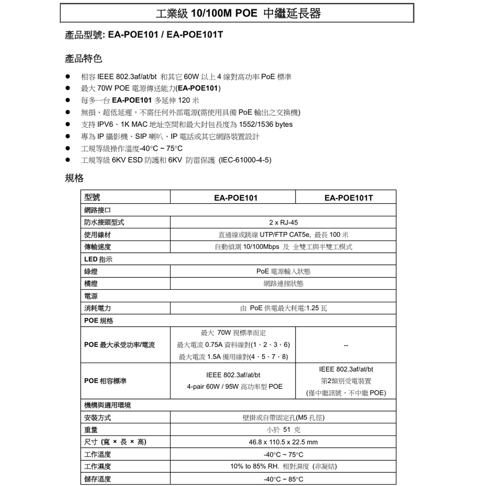 昌運監視器 室內型10/100M POE乙太網路傳輸延長器