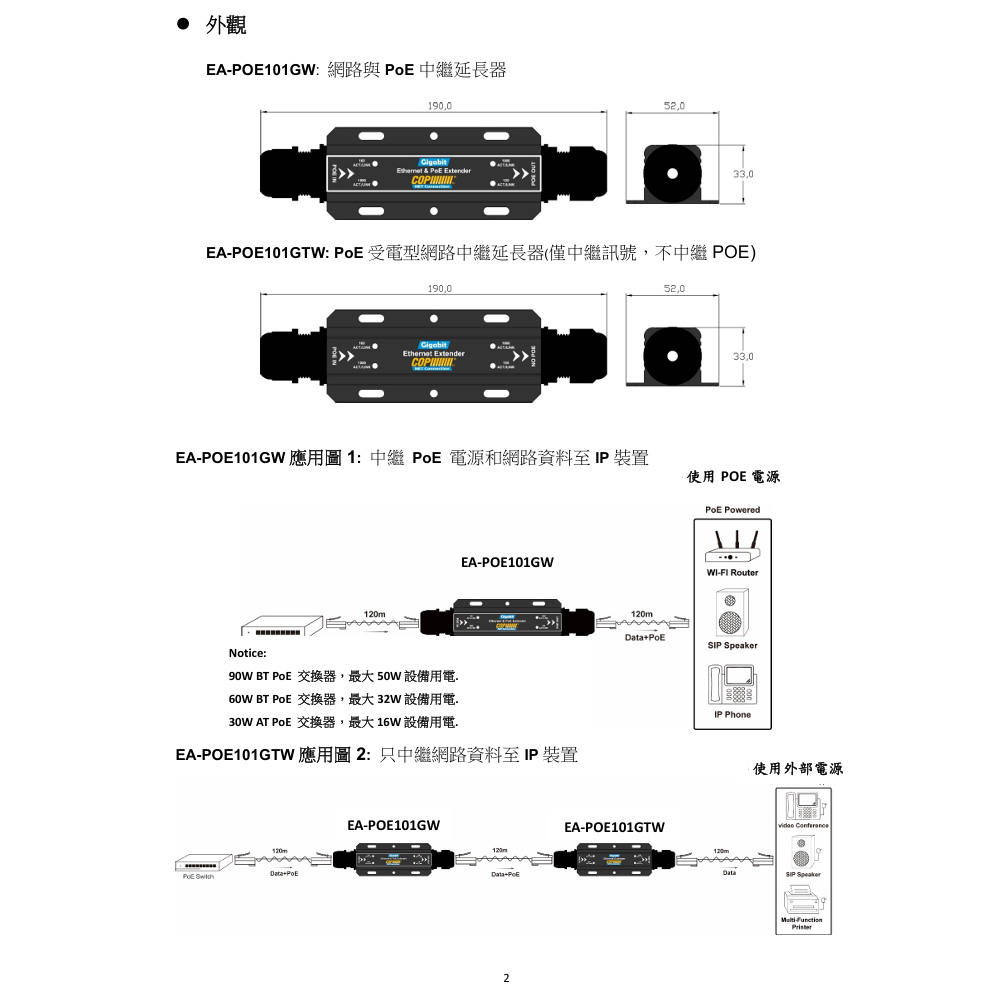 每多一台EA-POE101GW 多延伸120米