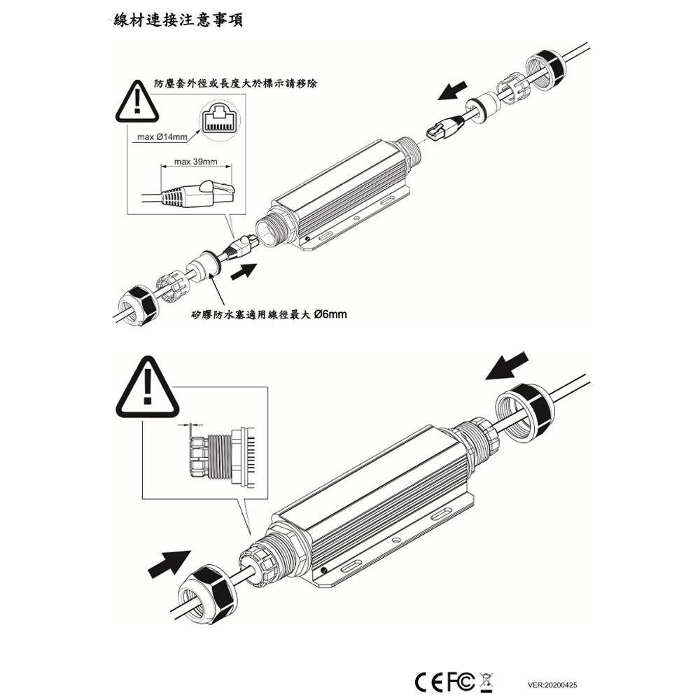 IP68防水等級認證、UL 94-V2防火材質防水栓、鋁質外殼