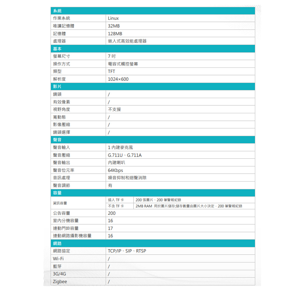 昌運監視器 DJS-S7320 7吋 觸控式保全影像網路室內機 支援無回應語音留言 電梯門禁控制