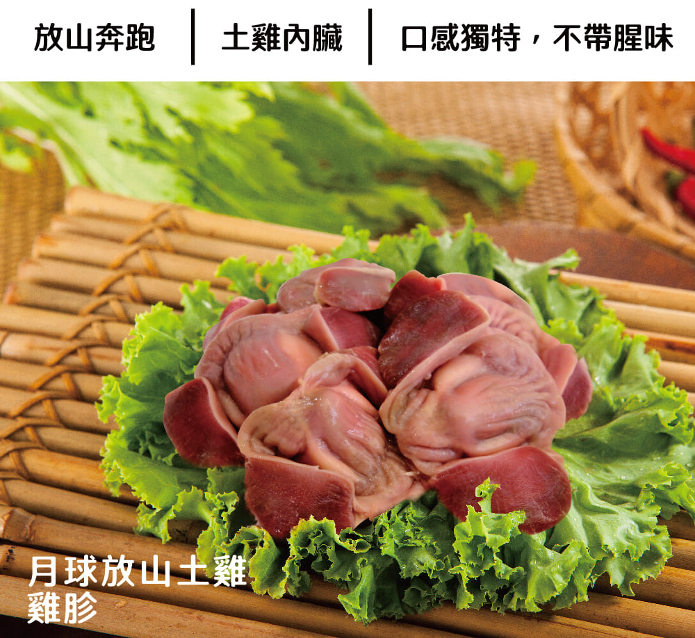 內臟的光澤與外表,是雞隻最容易看的是健康與否的關鍵。月球放山土雞胗天然健康,口感結實有嚼勁,最適合拿來煮下水湯,放點薑與米酒,簡單溫暖的美味就能成上桌,佳餚:包含雞胗下水湯、滷雞胗、串燒雞胗、爆炒雞胗等等料理,都是不同口味的選擇,美味又營養。