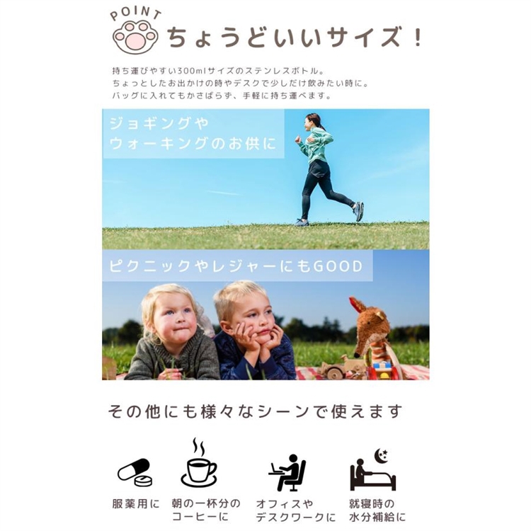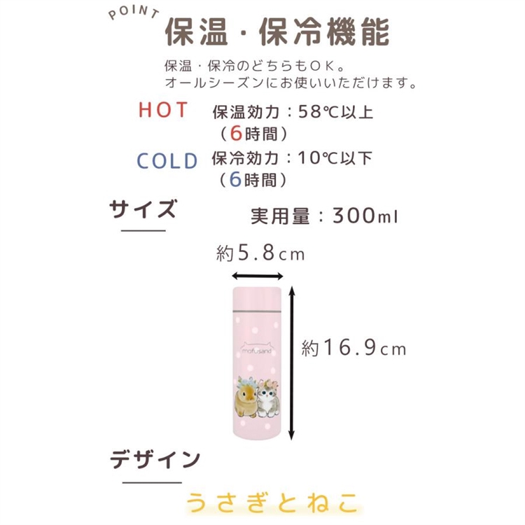 🐱萌翻的人氣插畫mofusand『天婦羅炸蝦與貓』,直接擊中你的少女心🐱🐰容量恰到好處的300mL,輕鬆裝袋不顯笨重🐰保溫保冷效果,讓你四季都好用🐰外出輕旅行,自行攜帶環保杯,友善環境保溫效果:84℃以上(1小時)/ 58℃以上(6小時)保冷效果:10℃以下(6小時)
