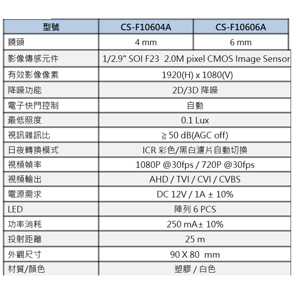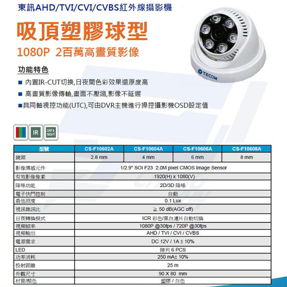 昌運監視器 東訊 TECOM CS-F10604A 200萬 紅外線半球攝影機 紅外線25M 支援日夜切換