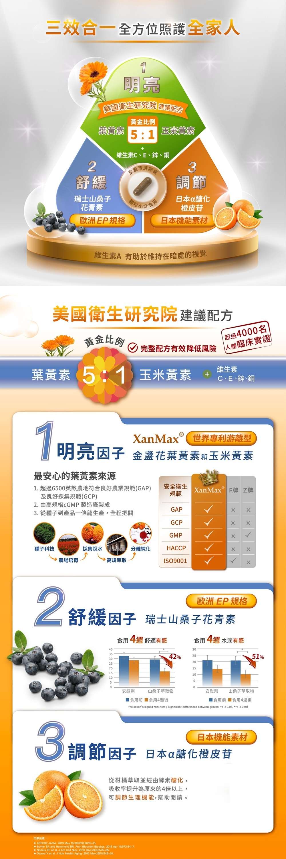 優視界 素食膠囊 60粒/入.獨家橙皮苷 應援閱讀高度.明亮|黃金比例:XanMax®游離型 葉黃素 + 玉米黃素 (5:1).舒緩|瑞士山桑子花青素.調節|日本α醣化橙皮苷.維生素A、C、E、鋅、銅 - 美國衛生研究院建議配方.領導藥廠和SGS把關 791項風險物質檢測合格.不含防腐劑、甜味劑、人工香料、人工色素、乳糖.全素清透膠囊 顆粒小好食用規格說明Q1: 每天攝取的葉黃素越多越好嗎?A1: 葉黃素食用過多可能會導致皮膚變黃。台灣政府規定葉黃素的每日上限為 30 毫克,優視界是安全無虞的。Q2: 優視界該怎麼吃呢?A2: 未滿 10 歲每日 1 粒。10 歲以上一般保養每日 1 粒;加強保健每日 2 粒。Q3: 市售保健食品常看到含有「葉黃素酯」,和葉黃素有什麼區別?A3: 「葉黃素酯」→ 非「純」的葉黃素。內含脂肪酸需要經消化代謝才能有效吸收Q4: 孕婦和哺乳媽媽可以吃優視界嗎?A4: 優視界不含防腐劑、甜味劑、人工香料、人工色素等,成分相對單純,適合孕婦及哺乳媽媽食用。