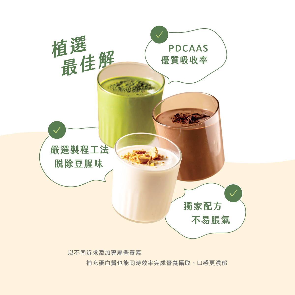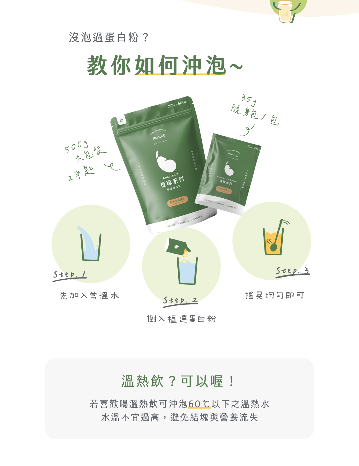 本公司只提供電子發票 下單請在備註提供電子郵件 PlantsB 彼蛋白植選蛋白飲-日式抹茶-盒裝30入【內容量】:每包35克,30包入【保存方式】:避免放置陽光直射、高溫潮濕處,產品拆封後請盡快食用完畢【建議食用方式】:以1:10比例的常溫水或喜愛飲品沖泡食用,也可依個人口感調整比例市面唯一複合植物蛋白,高蛋白補給的全新提案以植物最純粹的面貌,寫味蕾與養分的協奏樂章調和來自大豆、豌豆、杏仁、葵花、米等五種植物蛋白來源,由專業營養師調配整合多種來源營養,成為最完美的PDCAAS蛋白配方,優於牛肉的蛋白質消化率。植物蛋白不含乳糖,是乳糖不耐者的高蛋白攝取替代方案,可避免乳糖所引起的不適。除了補充蛋白質外,同時攝取植物蛋白本身富含的鈣、鎂、磷、鉀等多種微量元素,幫助維持身體正常機能與活力- 大豆蛋白:擁有最完整胺基酸- 豌豆蛋白:BCAA含量最高- 杏仁蛋白:富含優質蛋白質及油脂,提升口感滑順- 葵花蛋白:富含甲硫胺酸,優質不飽和脂肪酸- 米蛋白:精胺酸含量為牛奶的三倍*PDCAAS(蛋白質消化率校正胺基酸評分)是一種蛋白質消化吸收率校正評分質量的評價指標,藉由衡量蛋白質的消化率以及其是否能夠滿足人體胺基酸的需求而對不同的蛋白質進行評分專利技術,脫去豆腥味專利萃取技術,擺脫植物蛋白飲常見的豆腥味,也沒有市面植物蛋白的沙沙口感獨家不易脹氣配方傳統純大豆飲品易造成脹氣,彼蛋白透過比例調整,飲用不易脹氣推薦適用植物蛋白族群運動健身族群:運動後30分鐘補充蛋白質乳糖不耐者:植物蛋白飲不含乳糖,適合乳糖不耐者飲用銀髮族長輩:消化吸收較差,日常飲食中應增加蛋白質攝取忙碌上班族:餐間可飲用植物蛋白作為健康的點心不喜愛動物性乳清蛋白者:全植物來源的植物蛋白,沒有你不喜歡的味道如何沖泡:以40度以下常溫水,以1:10的水量比例搖勻飲用。可依個人喜好調整水量或加入冰塊,不影響蛋白質攝取量和效果。沖泡時建議水溫不要超過60度,避免結塊與營養流失,想要溫熱喝可以先以一半的常溫水泡開乳清後再酌量加入溫熱水,整體溫度不要超過60度。過敏原注意:本產品含有大豆、堅果種子、麩質穀物及其製品。本產品生產廠房,其設備有處理奶製品、花生、芝麻及其製品。有相關過敏疑慮者請根據個人情況謹慎使用*彼蛋白全品項產品,皆未使用阿斯巴甜