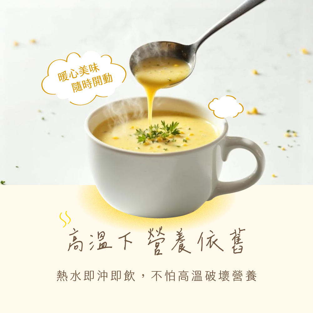 本公司只提供電子發票 下單請在備註提供電子郵件 *濃郁滿足,蘑菇馬鈴薯口味【內容量】:每包 35 克 每包含20g蛋白質,為美力而生的高蛋白濃湯● 使用 4 種植物蛋白:大豆蛋白、米蛋白、葵花籽蛋白、豌豆蛋白,提供多種植物營養● 每份含有 20g 蛋白質,提供日常所需● 熱量每包約 135 大卡,當做點心飽足感剛剛好● 綜合維生素、礦物質添加● 添加流行鏈球菌發酵物(含透明質酸鈉)● 70 度 C 熱水即沖即飲,不怕高溫破壞營養素,稍加攪拌,溫暖美味隨時開動!