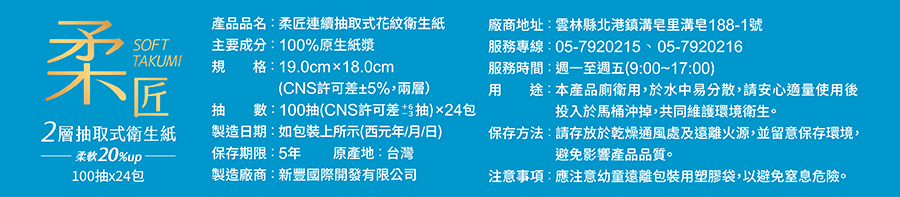 ◎Brand:柔匠 ◎Specifications: 100PC抽 x 24 x 1Bag袋