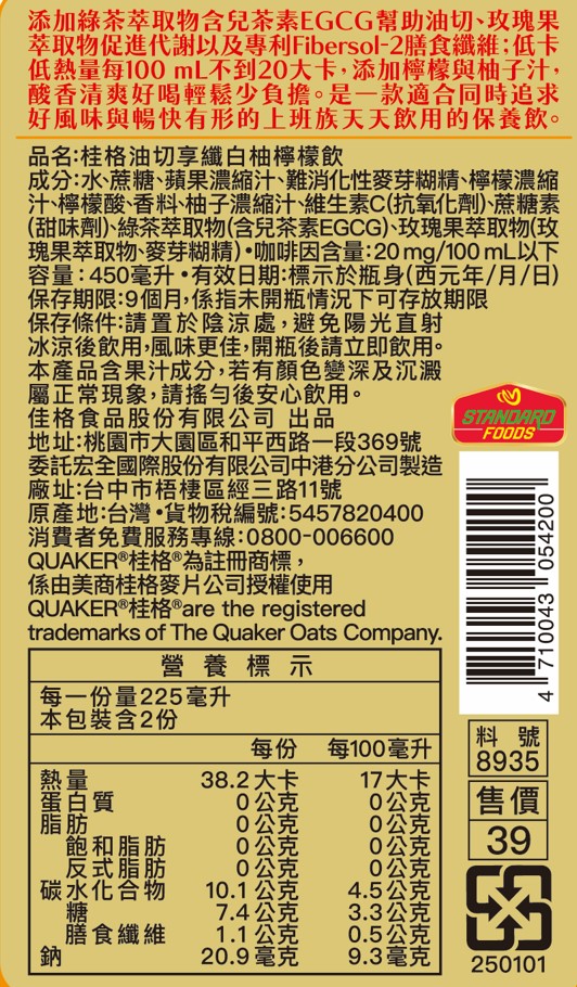 ◎Brand:桂格 ◎Specifications: 450ml毫升 x 1 x 4Bottle瓶