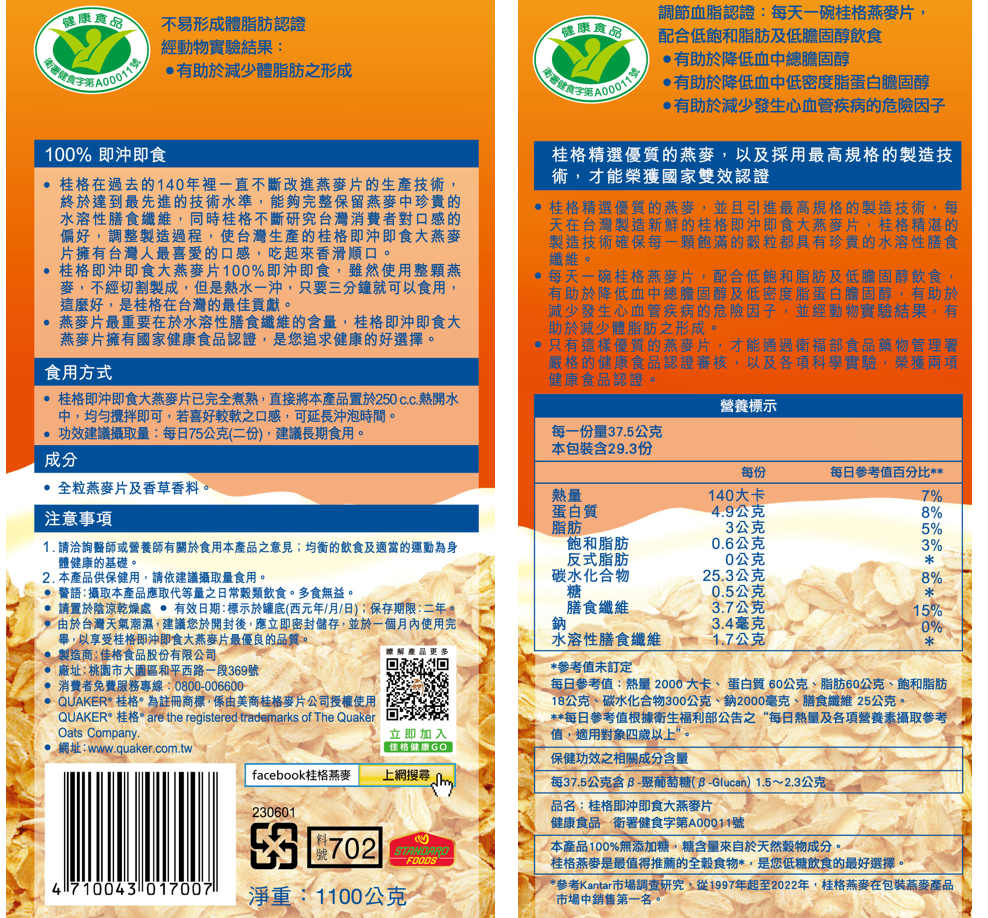◎Brand:桂格 ◎Specifications: 1100g克 x 1 x 1Can罐