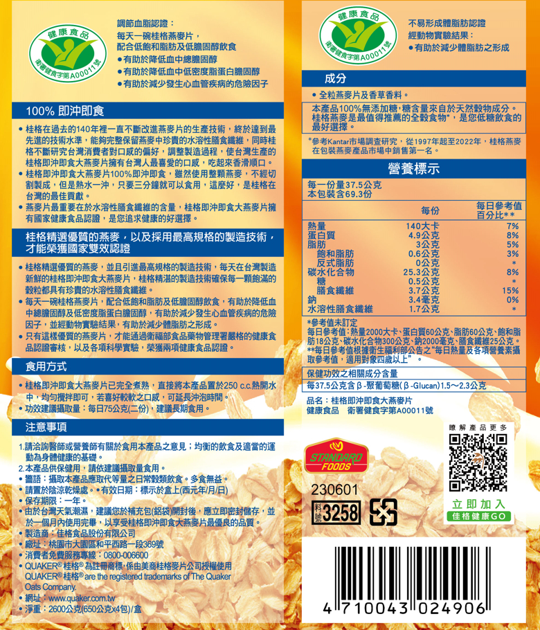 ◎Brand:桂格 ◎Specifications: 2600g克 x 1 x 1Box盒