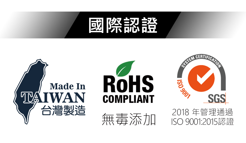 品質保證:全程台灣製造,品質管理ISO9001:2015認證,材質全數通過SGS無毒性檢驗。