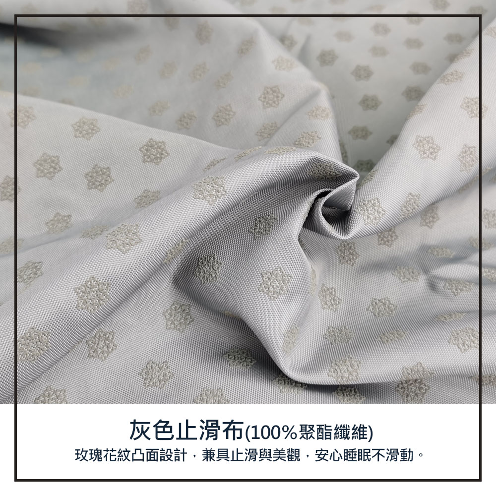 外布套材質:外布套上層:卡其色或深藍色羅紋布(91%尼龍+9%彈性纖維)/外布套下層:灰色玫瑰花紋止滑布(100%聚酯纖維)