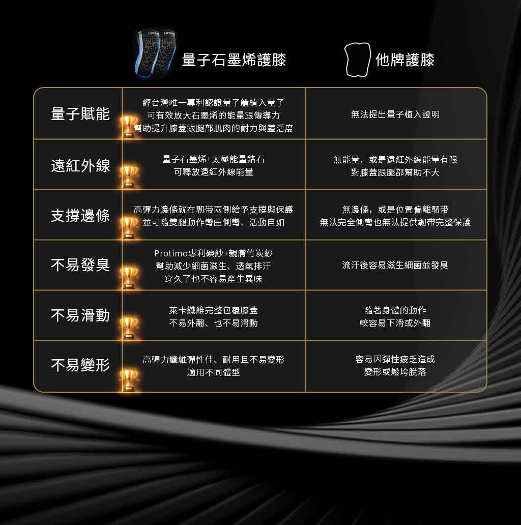 ♕一百多年來,多位物理學家因為量子力學相關研究榮獲諾貝爾物理學獎,而2022年獲獎的「量子糾纏」,也讓許多人開始努力將存在於宇宙間的量子能量運用在各種生活用品上,讓更多人因此受惠!♕經台灣唯一專利認證量子艙植入量子,是真正具有量子能量的機能性護膝。♕MIT台灣製造,買得放心!用得安心!♕專屬禮盒包裝,送禮自用兩相宜!