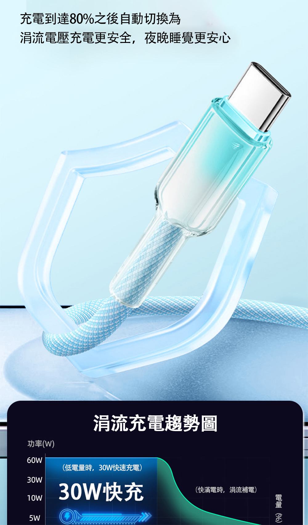 [Lele] 120W Ice Crystal Head Colorful Braided Fast Charging Cable USB to TYPE-C 1.5M Gradient Blue