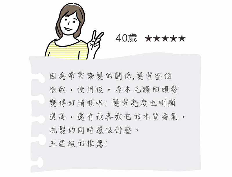 日常養護 : 洗髮後取適量塗勻於髮尾,停留片刻,沖水洗淨就可感受到髮質的柔順。