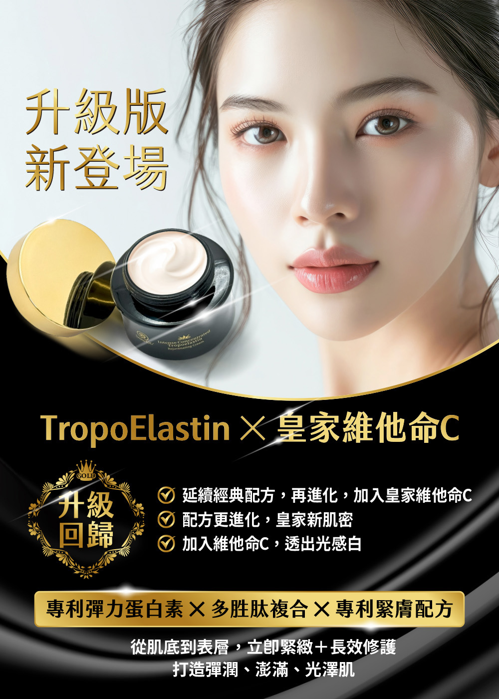 成 分:Water 水、Glycerin 甘油、Carthamus tinctorius (Safflower)seed oil 紅花油、Glyceryl stearate 甘油硬脂酸、Propanediol 1,3-丙二醇、Isopropyl Palmitate 十六酸異丙酯、PEG-100 Stearate PEG-100 硬脂酸酯、Stearic Acid 硬脂酸、Theobroma Cacao (Cocoa) Seed Butter 可可脂、Cetearyl Alcohol 棕櫚醇、Ceteareth-20 鯨蠟硬脂醇聚醚-20、Polysorbate 80 聚山梨醇酯 80、Myristyl Myristate 肉荳蔻酸肉荳蔻脂、Magnesium Ascorbyl Phosphate 維他命C磷酸鎂鹽、Panthenol 維生素原B5、Tocopheryl Acetate 醋酸鹽維他命E、Glyceryl Stearate 甘油硬脂酸、Dimethicone 矽靈、Triethanolamine 三乙醇胺、Sodium Hyaluronate 玻尿酸鈉、Acetyl hexapeptide-8 六胜肽、Carbomer 卡波莫、Phenoxyethanol 苯氧乙醇、Benzyl Alcohol 苯甲醇、Ethylhexylglycerin 乙基己基甘油、Butylene Glycol 丁二醇、Sh-Polypeptide-50(Elastin)、Sodium Hydroxide 氫氧化鈉、Fragrance 香料、Polysorbate 20 聚山梨醇酯 20、Macrocystis Pyrifera (Kelp) Extract 巨藻萃取、Pvp 聚乙烯吡咯烷酮、Hydrolyzed Vegetable Protein 水解植物蛋白、Potassium Sorbate 山梨酸鉀、Sodium Benzoate 苯甲酸鈉、Palmitoyl Tripeptide-1 棕櫚醯三肽-1、Palmitoyl Tetrapeptide-7 四胜肽棕櫚酸酯