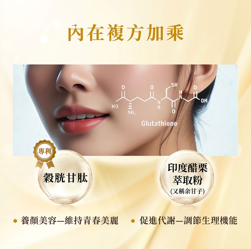 純水、砂糖、麥芽糊精、蔓越莓果汁粉(蔓越莓濃縮汁、葡萄汁色素、黑加侖濃縮汁)、辛烯基丁二酸鈉澱粉、檸檬酸、檸檬酸鈉、玉米澱粉、洛神花萃取粉、蘋果酸、蔓越莓香料粉(蔓越莓香料、脂肪酸甘油、維生素E(抗氧化劑))、β-胡蘿蔔素(阿拉伯膠、中鏈三酸甘油酯、L-抗壞血酸(維生素C)、β-胡蘿蔔素、二氧化矽、生育醇(維生素E)(抗氧化劑))、專利魚鱗膠原蛋白粉、專利女王蜂子粉(女王蜂子、β-環狀糊精)、專利埔鹽花粉粉末、專利酵母濃縮(含彈性蛋白)、專利水溶性酵母粉(含毅胱甘肽)、印度醋栗萃取物(余甘子)、專利蜂膠粉(乳糖、綠膠萃取物、β-環狀糊精、水)、海洋鎂萃取液、蔗糖素、蘋果酸。