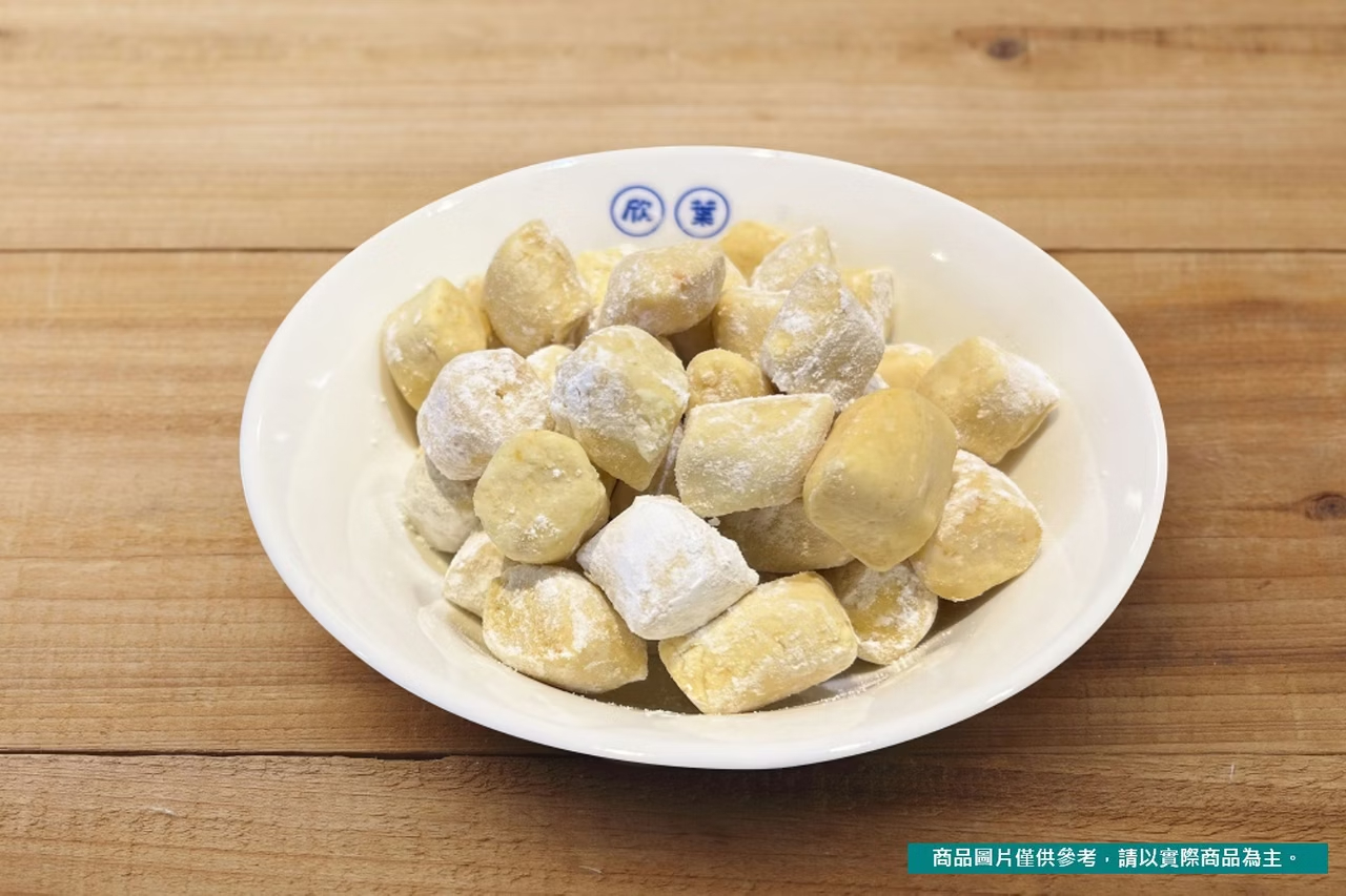 特選台灣在地熟成地瓜費時熬煮,再以手工揉搓出扎實嚼勁,口口Q彈地瓜香,加入甜湯或剉冰都是完美一品。